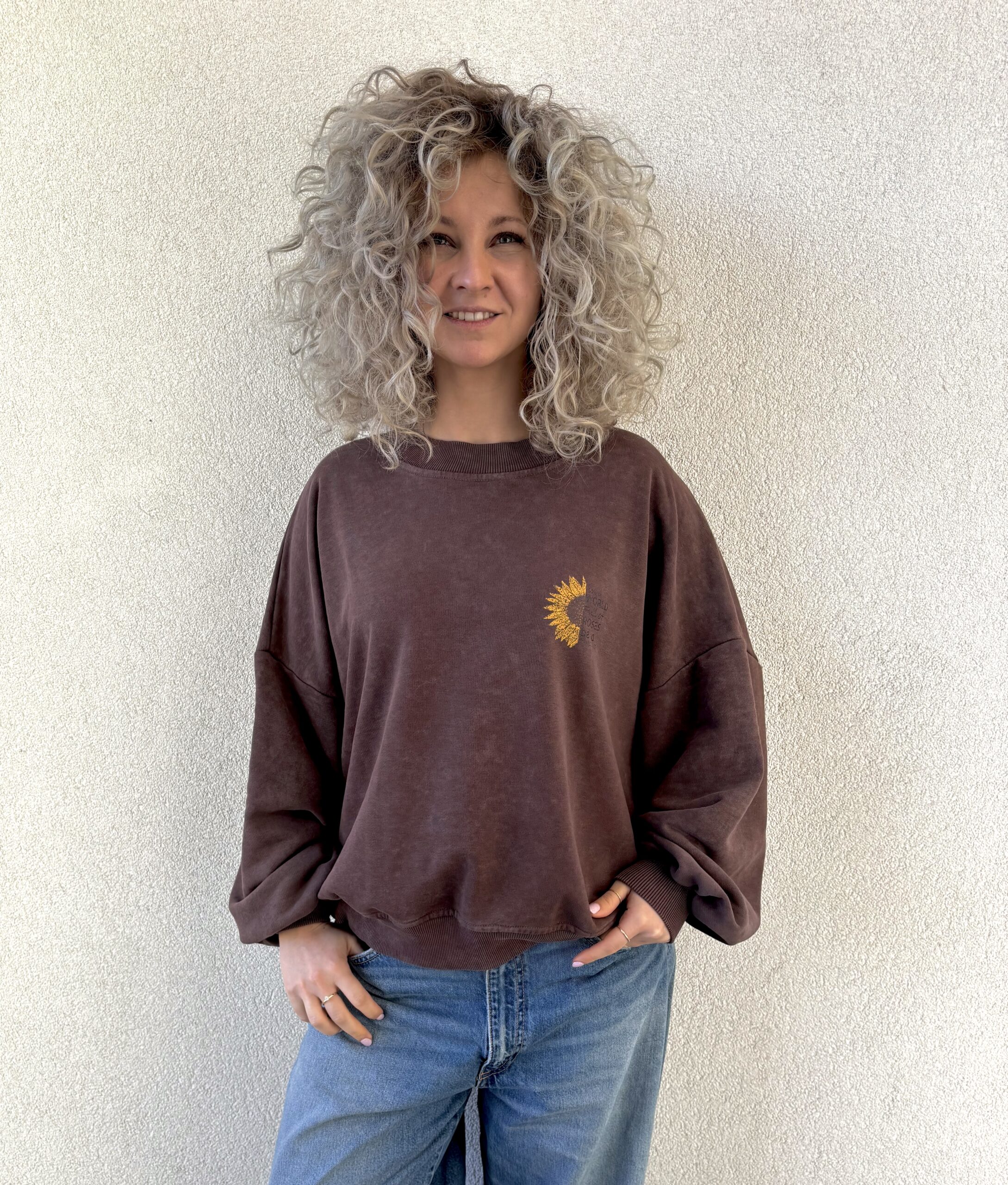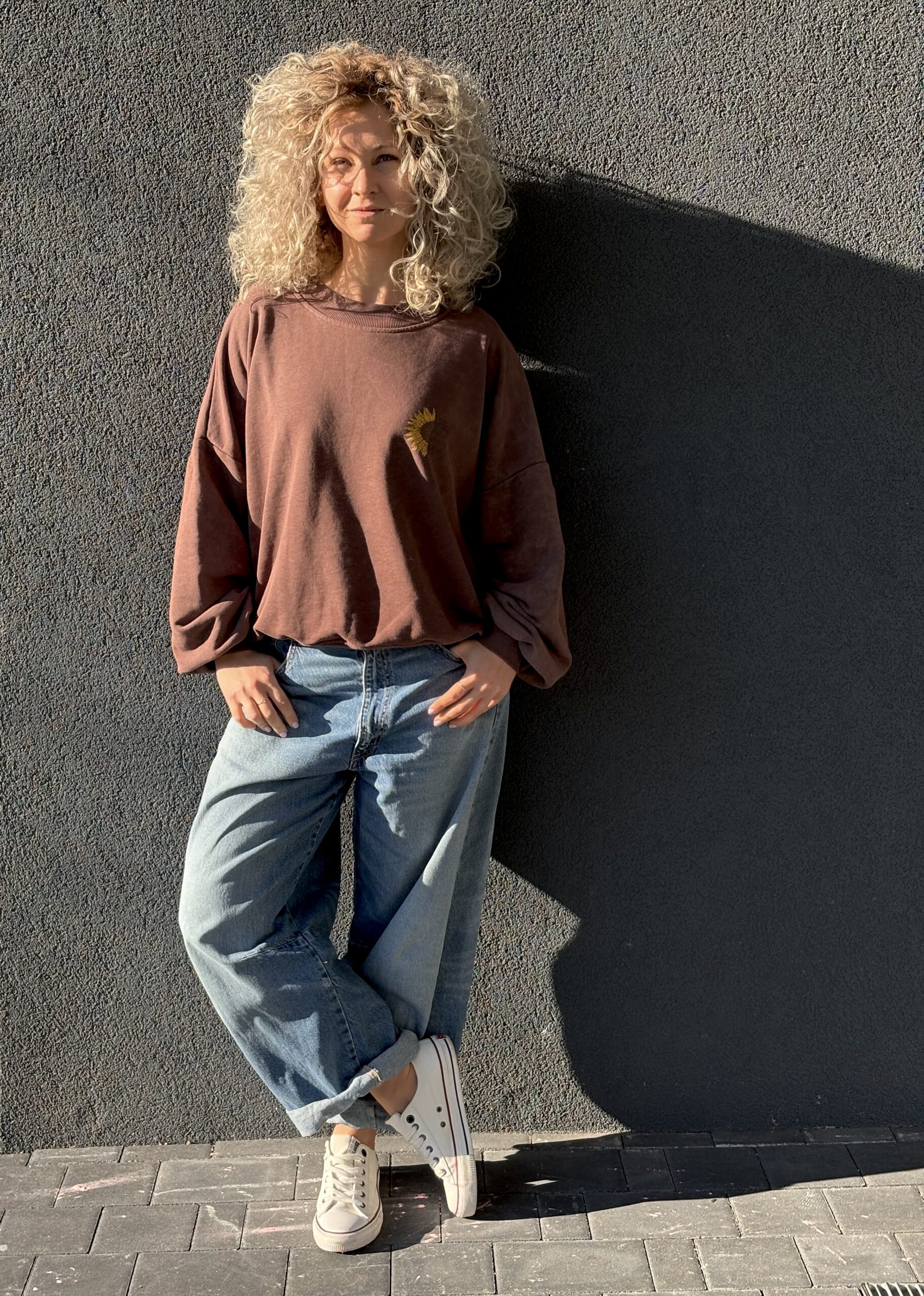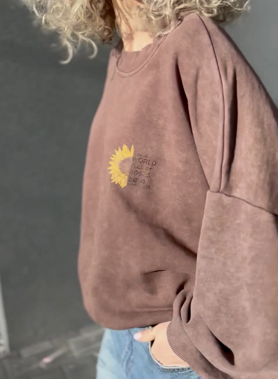 Klasyczna bluza w stylu VINTGE. Oversize’owy krój i opuszczona linia ramion. Bluza została poddana specjalnemu opraniu, dzięki czemu jest niezwykle miękka. Na piersi niepowtarzalny nadruk. Ilość bluz limitowana.
