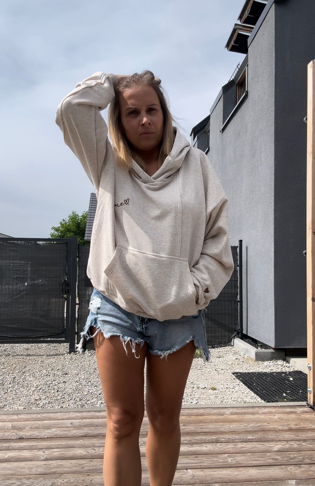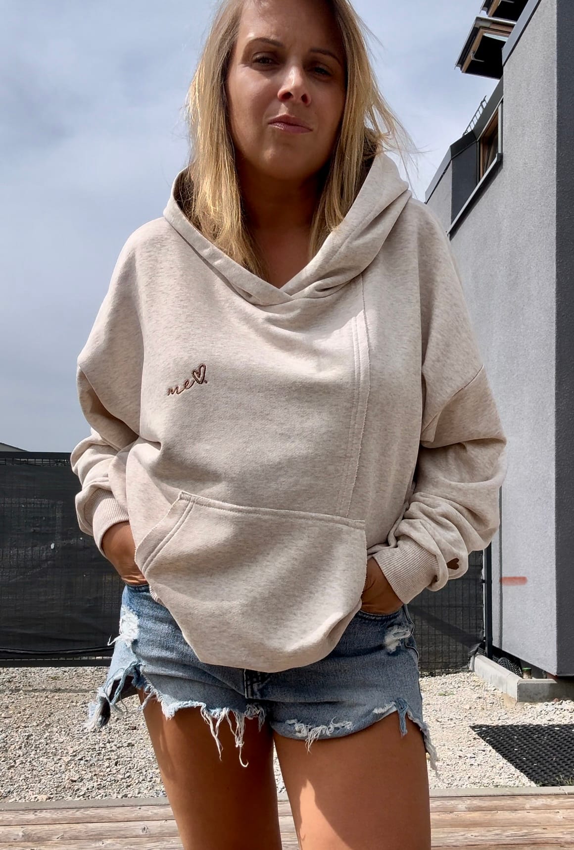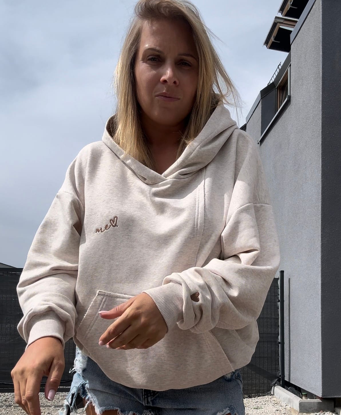 *** EDYCJA LIMITOWANA ***Dostępna do 21.08.26r. lub wyczerpania zapasu. Mięsista, beżowo – melanżowa bluza z kapturem typu kangurka. Surowe łączenia na przodzie, tyle i rękawach nadają jej niepowtarzalnego charakteru. Ozdobne hafty – na piersi oraz rękawie. Ilość ograniczona.