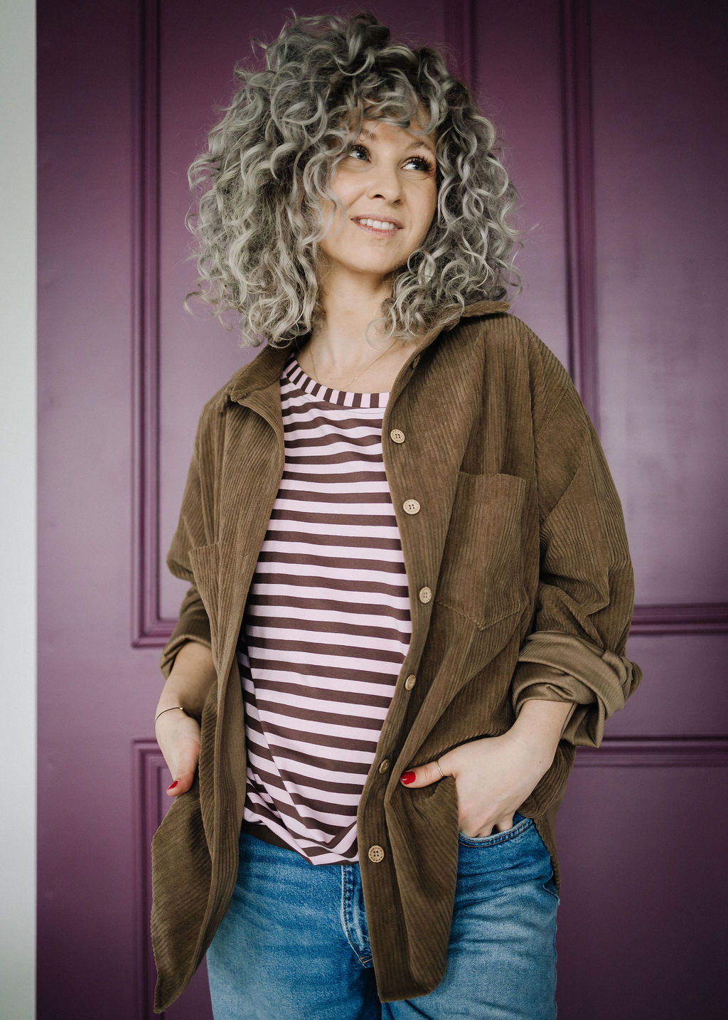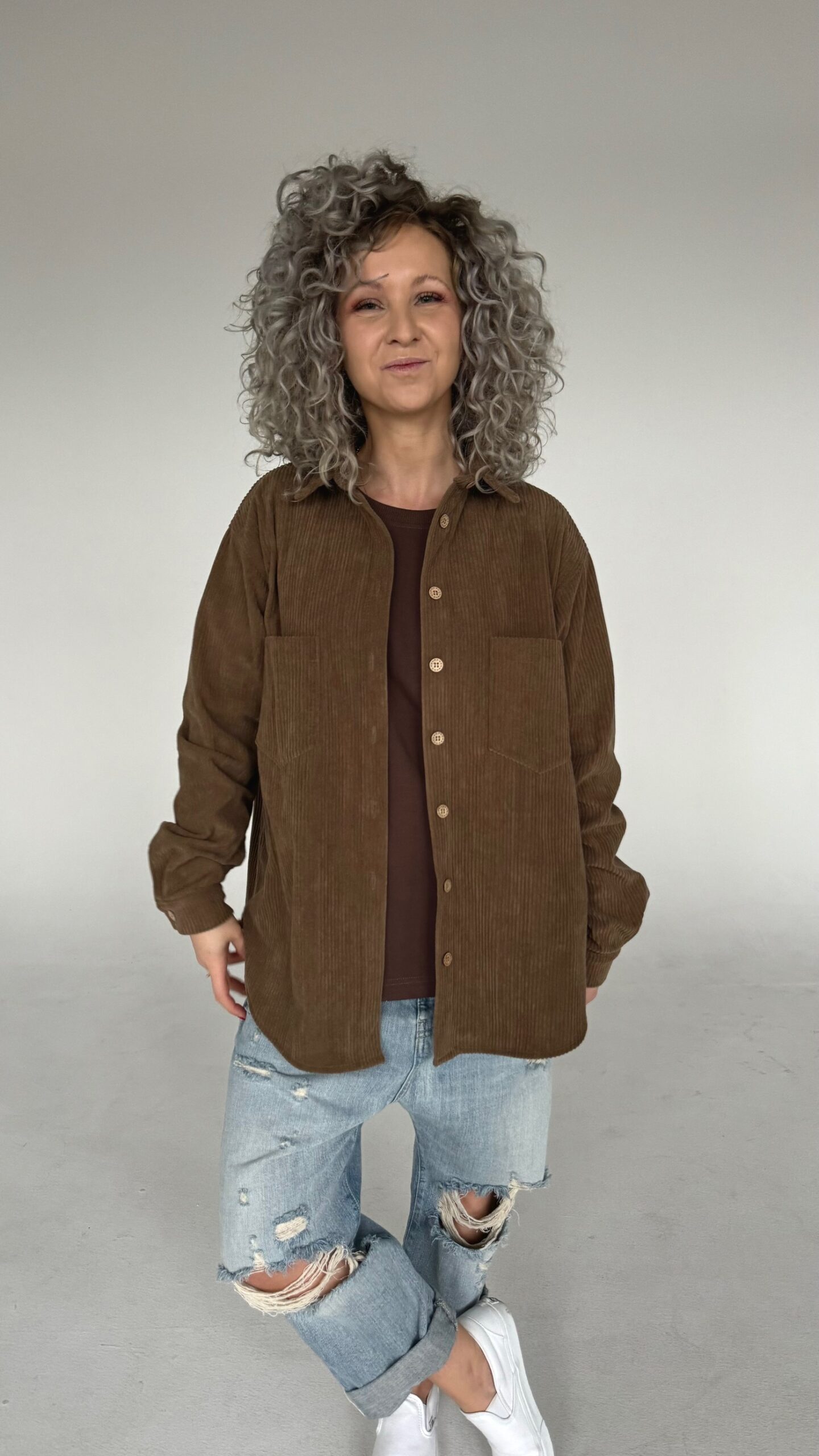 Cudnie miękka sztruksowa koszula. Idealne połączenie wygody z elegancją. Luźny fason, lekko oversize’owy krój sprawdzi się idealnie do luźnej jak i eleganckiej stylizacji. Mankiety zapinane na guziki. Możesz nosisz ją zapiętą lub narzuconą na koszulkę w wersji rozpiętej.