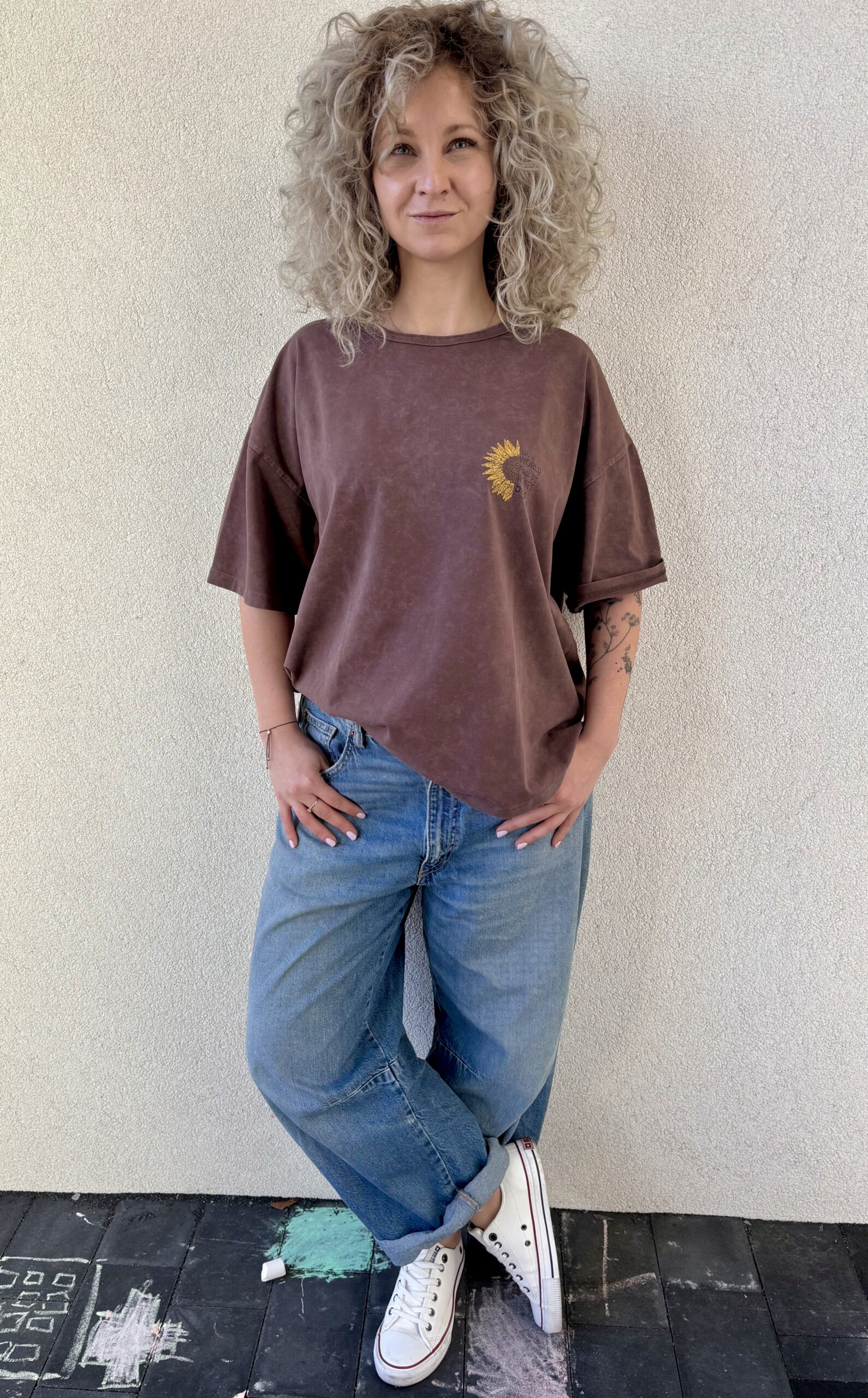 Klasyczna, oversize’owa koszulka w stylu VINTGE. Została poddana specjalnemu opraniu, dzięki czemu jest niezwykle miękka. Na piersi niepowtarzalny nadruk. Ilość koszulek limitowana.