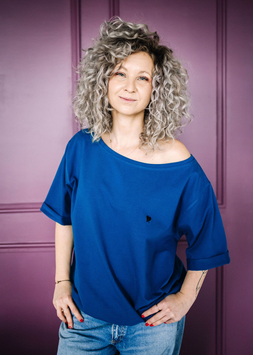 Koszulka z krótkim rękawa i dekoltem w kształcie łódki. Klasyczna, pasująca do każdej stylizacji. Możesz nosić tradycyjnie lub opuścić na jedno ramię. Założysz ją do jeansów jak również do eleganckich spodni. Uszyta w Polsce, ze świetnej gatunkowo bawełny. Dół bluzy wykończony ściągaczem.