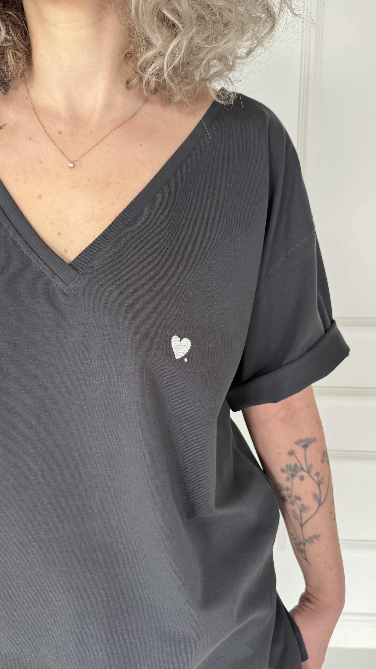 T-shirt V stalowy