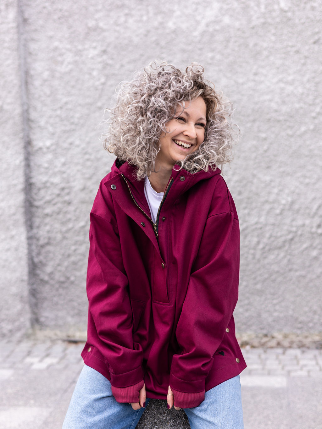 Ciepła, zimowa kurtka typu „kangurka”, zakładana przez głowę. Powrót do kultowych i oldschoolowych kurtek z czasów młodzieńczych. Wysoka stójka, głęboki kaptur, ściągacze na dłonie z otworem na kciuki, głębokie kieszenie po bokach. Rozcięcia po bokach zapinane na zatrzaski. Od spodu ciepły misiu w kolorze czarnym na całej kurtce. W dolnym tylnym panelu gumka pozwalająca na marszczenie. Kurtka wprost idealna, świetna na codzień do sportowych stylowek.